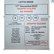 There was no Jackpot winner in tonight's Draw. The Jackpot remains at €15,000 with the reserve...