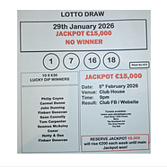 There was no Jackpot winner in last night's Draw. The Jackpot remains at €15,000 for our next ...