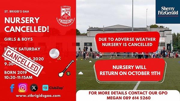 Unfortunately we will have to CANCEL the nursery (Saturday 4th of October).
