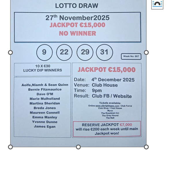 Thank you to everyone who supports St Brigid's Lotto and to our great Lotto Committee