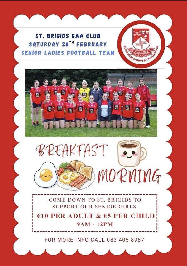 Come and join us in the clubhouse this Saturday 28th February for the Senior Ladies Footballer’s Breakfast morning!