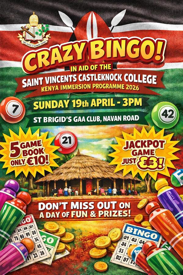 To help make this journey possible, the lads are hosting a Crazy Bingo Night in St. Brigid’s GAA Club.